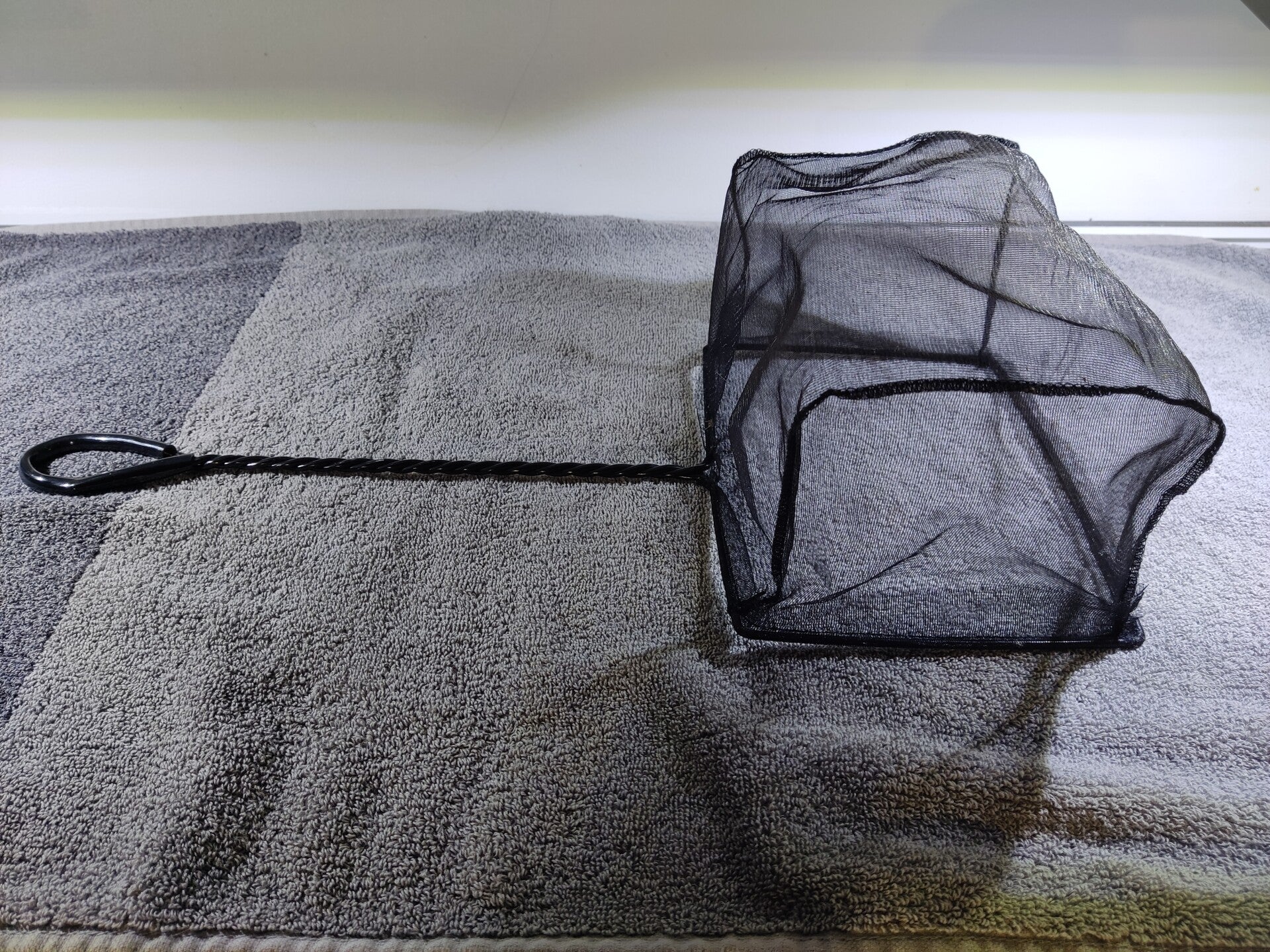 Dit grote schepnet (20cm) heeft extra fijne mazen en een vlakke bodem.